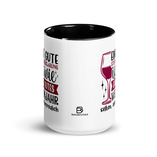 Keramiktasse mit farbiger Innenseite | "Eine gute Steuererklärung ist wie ein gutes Weinjahr: selten, aber erfreulich"
