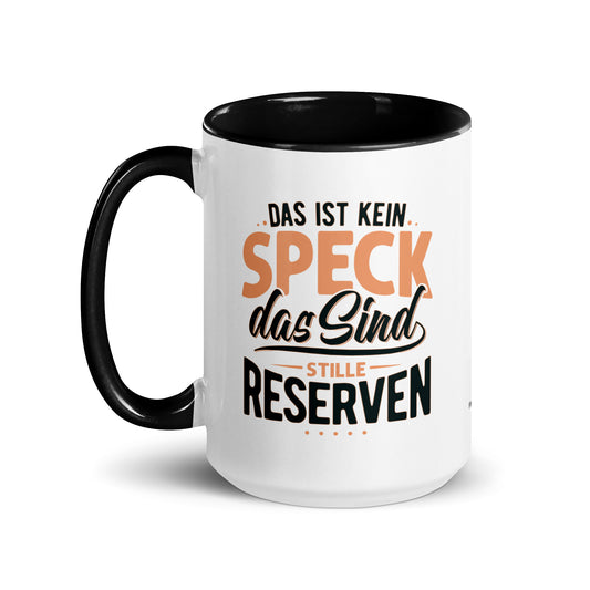 Keramiktasse mit farbiger Innenseite | "Das ist kein Speck - das sind stille Reserven"