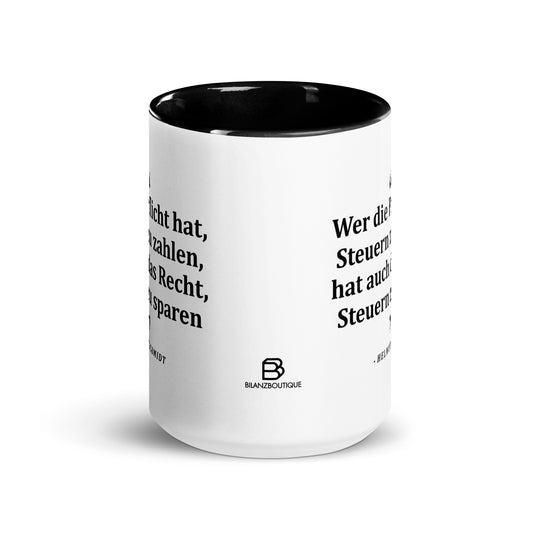 Keramiktasse mit farbiger Innenseite | "Wer die Pflicht hat, Steuern zu zahlen, hat auch das Recht, Steuern zu sparen"